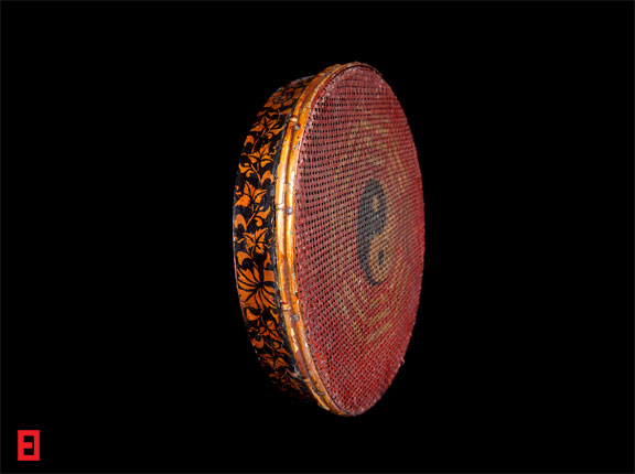 Plaited YIN-YANG Symbol Palembang, Indonesia Late 19th century Rattan, bamboo, silver leaf, lacquer, pigments D. 41cm, H. 7cm The East Indies Museum IDN: 40-2042-455