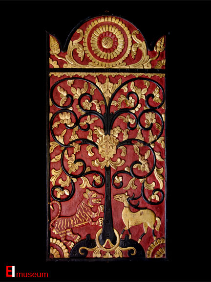 Central Java, Indonesia Early 20th C. Teakwood, gold leaf, pigments 57 x 33 cm Collection of Erie Prakoso IDN: 29-1683-371