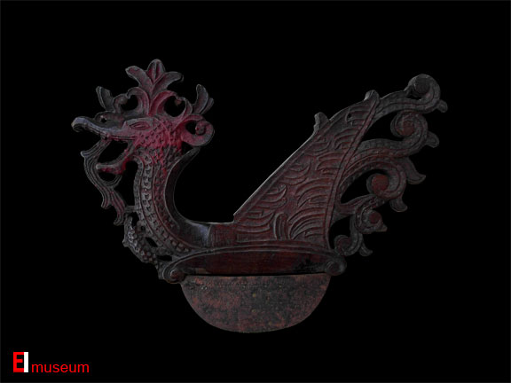 ANI ANI Ceremonial padi (rice plant) cutter Palembang, Indonesia Late 19th C. Tembesu wood, lacquer, silver leaf, iron 16 x 22 cm The East Indies Museum IDN: 369