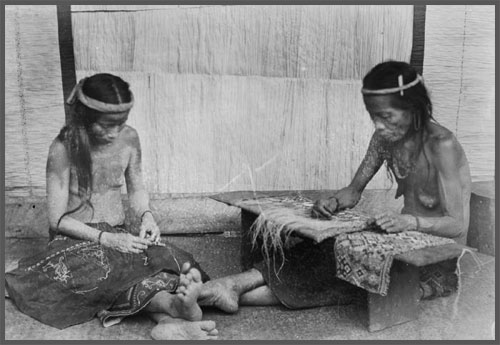 Two Kayan-Dayak women busy with stringing beads