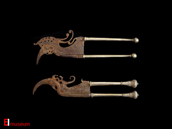 KACIP Areca nut cutter in the form of hornbill Sumatra, Indonesia 18th C Iron with silver overlay handles 32 cm each The East Indies Museum IDN: 2-1201-141-43