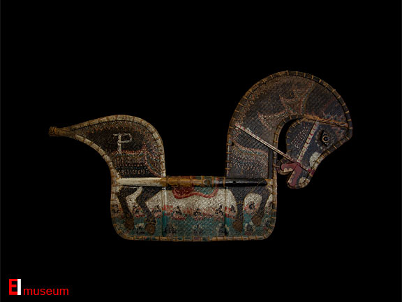 One of a pair of plaited bamboo stiffened hobby horses used in trance dancing
