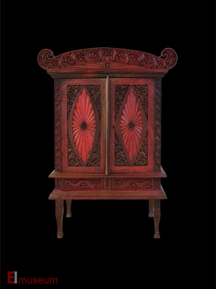 LEMARI Cabinet Central Java, Indonesia 19th C. Teakwood, pigments 103 x 143 cm The East Indies Museum IDN: 64-2180-643