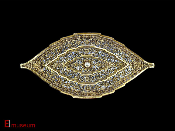 Palembang, Sumatra, Indonesia 19th C Gold and mica face, backed with copperĀ