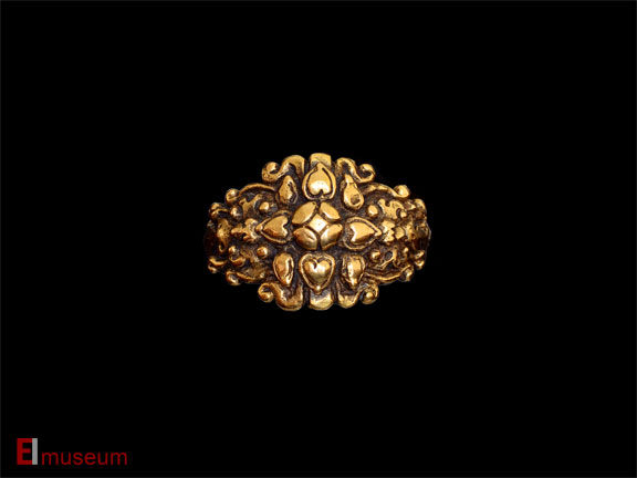Gold ring in the form of globular eight-petal lotus design