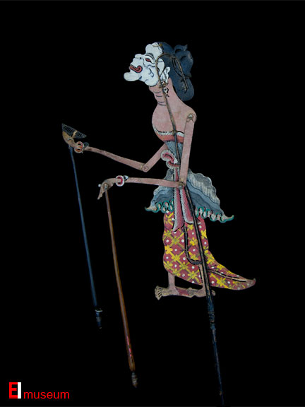 Central Java Early 20th C. Wayang puppet depicting "Cangik" Buffalo hide, horn, pigments 71 cm The East Indies Museum IDN: 29-1608-381