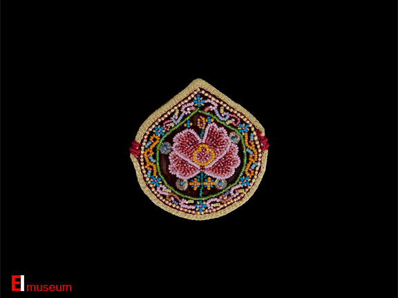 Palembang, Sumatra, Indonesia Late 19th/Early 20th C Velvet, "manik potong" (faceted beads) gilt silver sequins, gold thread, silk thread 6 x 6 cm The East Indies Museum IDN: 24-1335-335