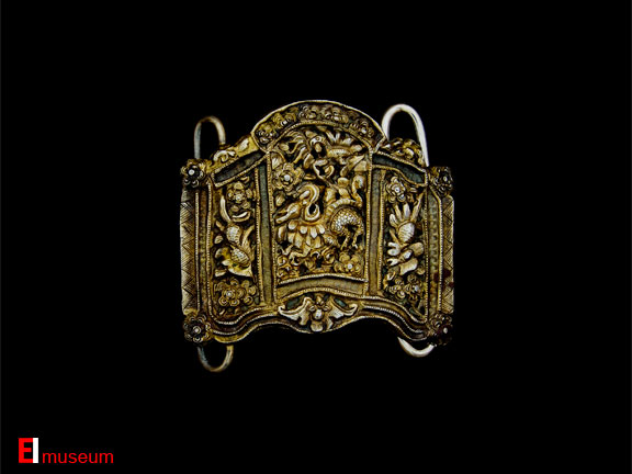 Gilt Silver Repousse Belt Buckle for Beaded Belt