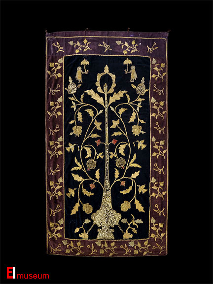 Southern Sumatra, Indonesia 19th C. Velvet, gold coil thread, gold thread, couching, embroidery, applique, sequins, calligraphy