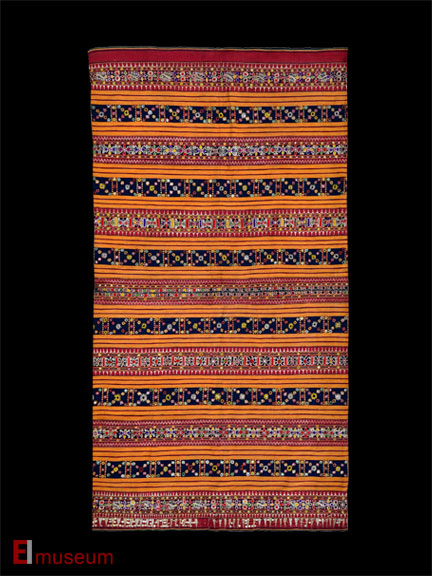 Lampung, Indonesia 19th C Handspun cotton, gold thread, mica chips, sequins, natural dyes, couching, applique, embroidery