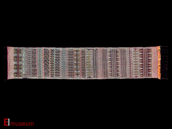 Pasemah, Sumatra, Indonesia 19th C Cotton, natural fiber, silk, metallic gold and silver yarns, supplementary weft weave, natural dyes