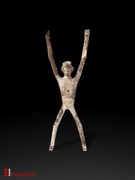 This statue was probably attached to either a treasure or funerary box with the broken dowel seen in the chest.